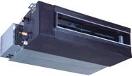 Кондиционеры данного типа монтируются в пространстве между подвесным потолком и обычным, а разветвленная сеть воздуховодов, расположенная в этом же пространстве, позволяет подвести охлажденный или нагретый воздух одновременно в несколько помещений. Канальный кондиционер позволяет подмешивать в обработанный воздушный поток свежий воздух с улицы для создания комфортных условий в помещении. Функция подготовки воздуха в режиме обогрева предотвращает поступление холодного воздуха в помещение на начальном этапе режима подогрева. Для удобства управления канальные сплит-системы поставляются с проводным пультом управления, который также обязательно должен быть установлен при использовании беспроводного пульта управления.