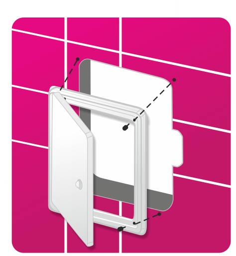 Люк-дверцы с фланцем серии Л применяются для настенного монтажа. Установка люка осуществляется при помощи цементного раствора, клея или саморезов. Предусмотрено использование во влажных помещениях.